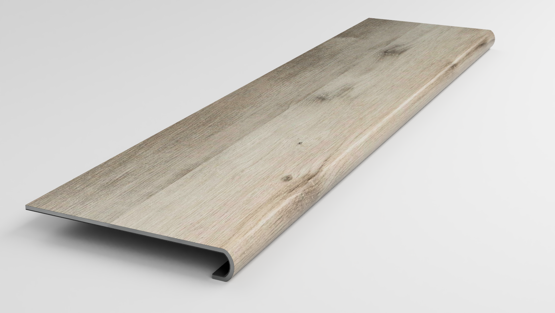 Made from NuCore Greythorne flooring, this Stair Tread will now allow you to use your favorite flooring on your stairs. Previously, you would have to use other tread brands that were made of subpar materials and only looked similar to your flooring! To make matters worse, a transition piece was often required at the top of the stairs posing both a hazard, and an eye sore. Treads Plus has made it possible to use true NuCore* Greythorne flooring to seamlessly transition from your flooring to your stairs.