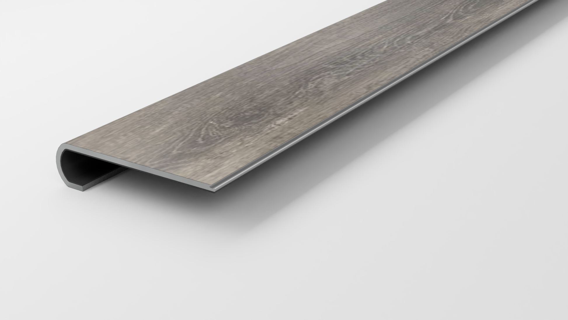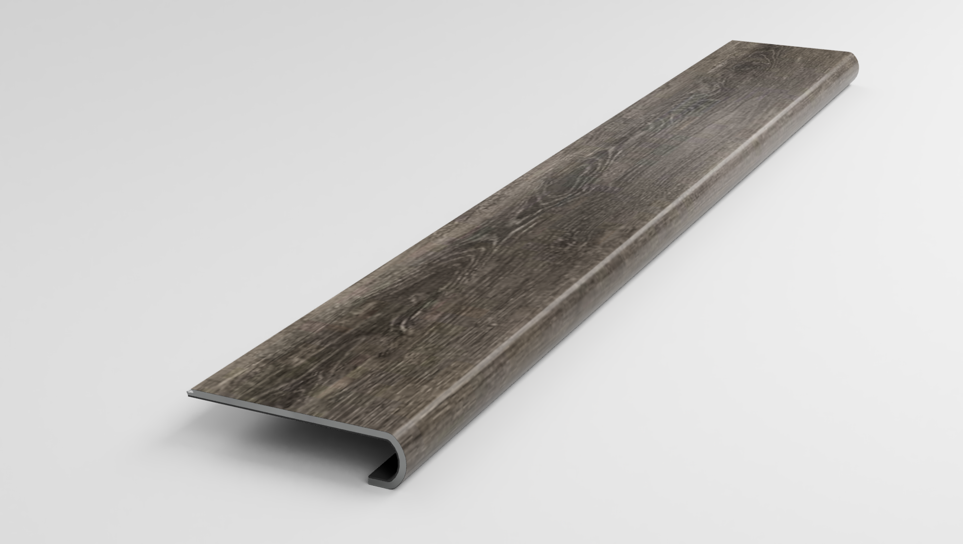 This variant is a Stair Nose made from a TrafficMaster Oaxaca Valley Gray Luxury Vinyl Plank. It is designed to be fitted and glued to the unfinished Stair Tread Nose. An addition TrafficMaster Oaxaca Valley Gray plank that you supply can be clicked in behind the nose to cover the remaining unfinished area.