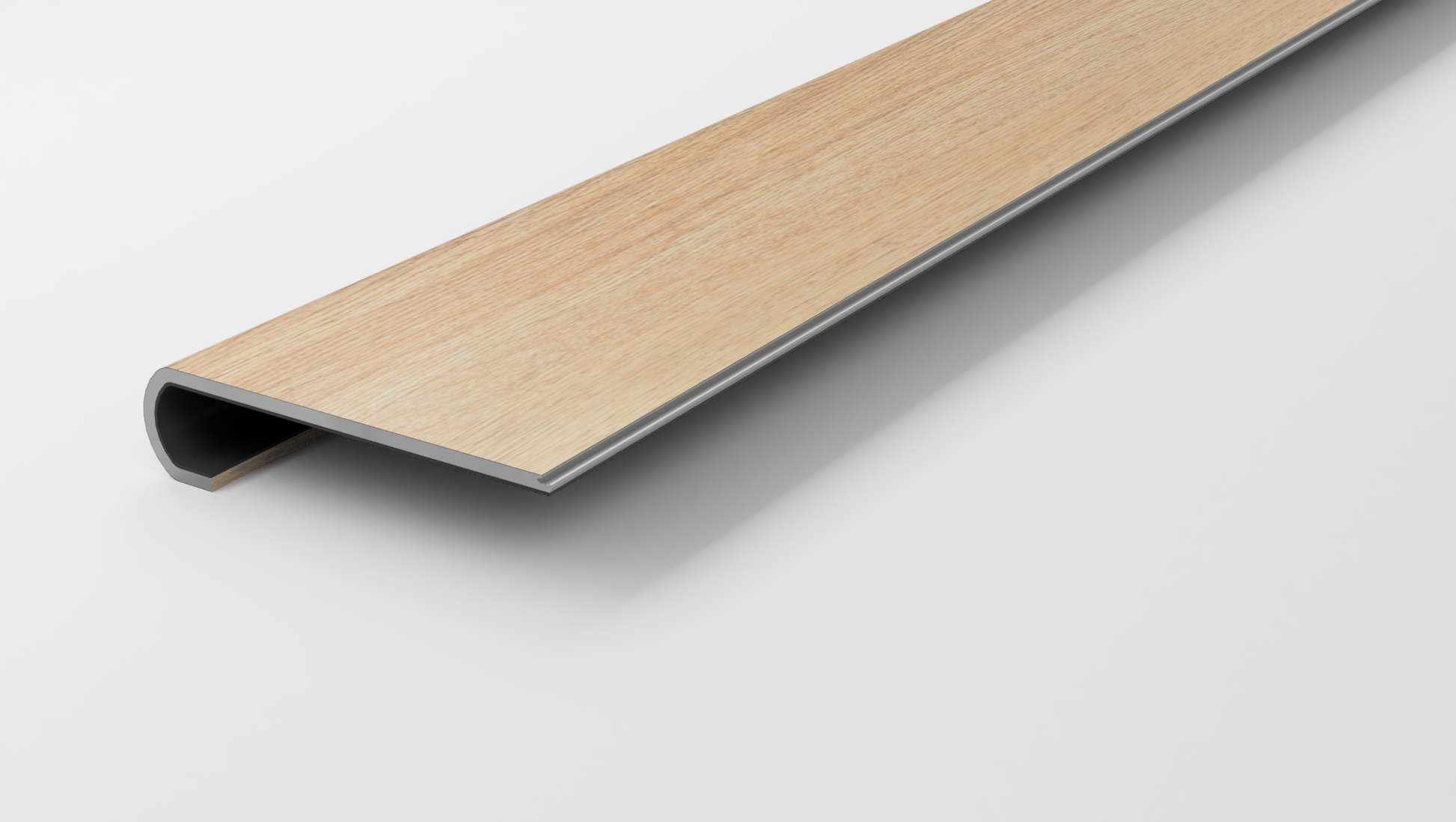 This variant fits 1-1/8 inch stair noses and has a length of 42 inches. It comes in a beautiful Bullnose design.