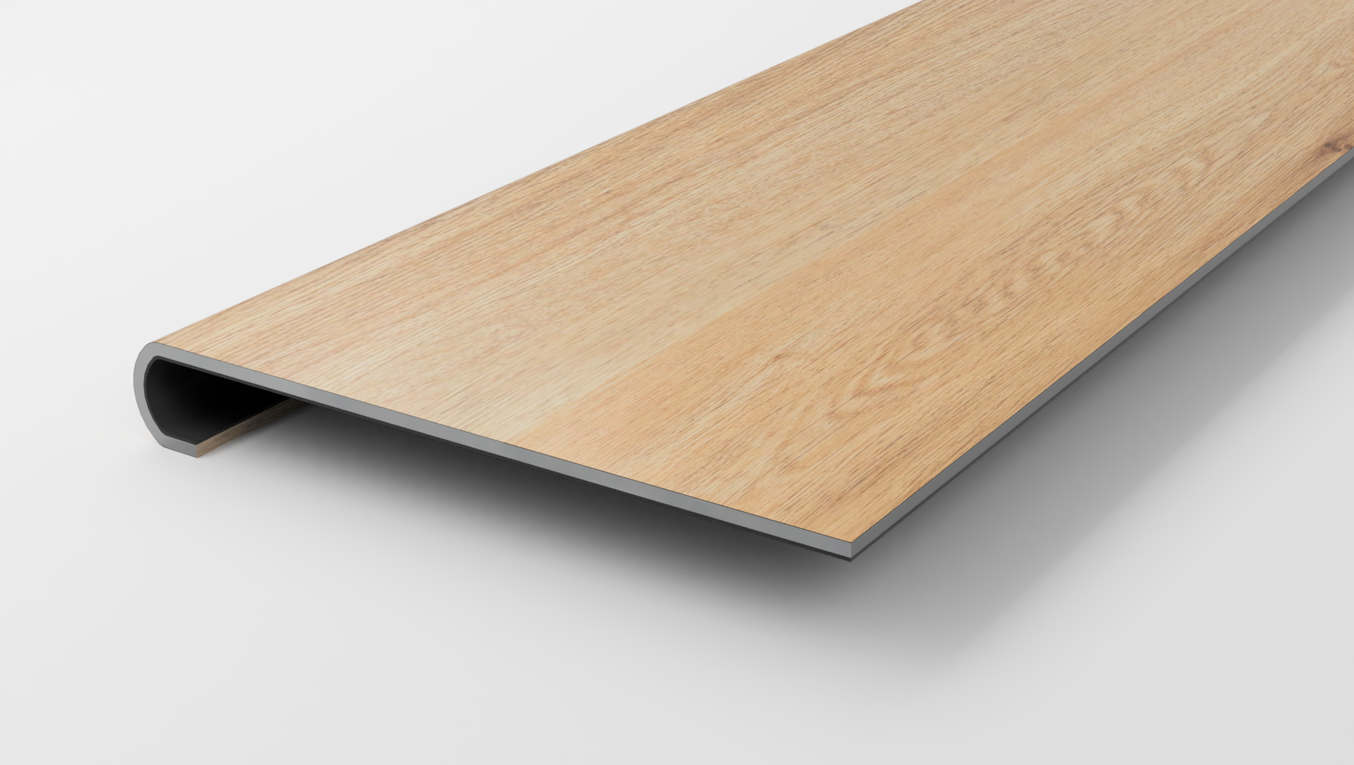 Made from NuCore Odin Peak flooring, this Stair Nose will now allow you to use your favorite flooring on your stairs. Previously, you would have to use other tread brands that were made of subpar materials and only looked similar to your flooring! To make matters worse, a transition piece was often required at the top of the stairs posing both a hazard, and an eye sore. Treads Plus has made it possible to use true NuCore* Odin Peak flooring to seamlessly transition from your flooring to your stairs.