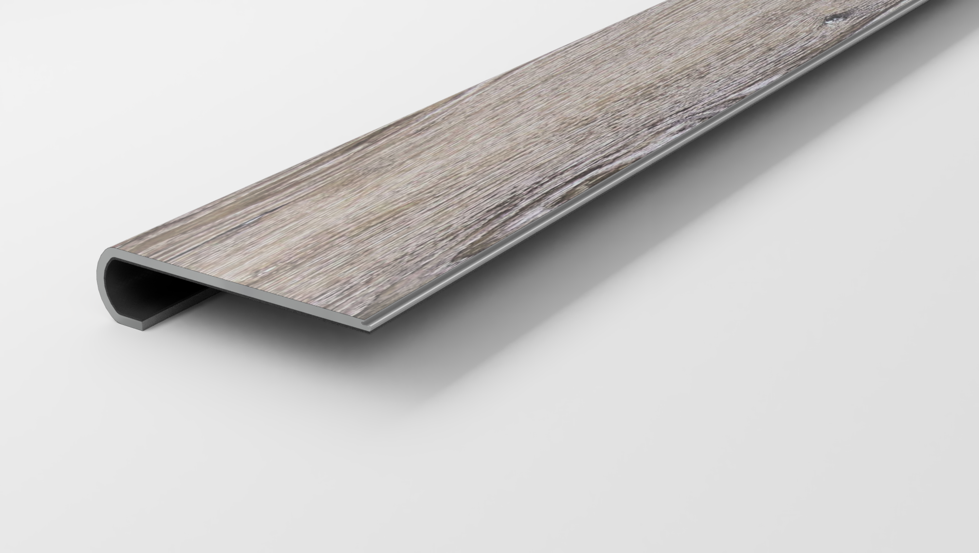 This variant is a Stair Nose made from a Coreluxe+* Oxford Estate Luxury Vinyl Plank. It is designed to be fitted and glued to the unfinished Stair Tread Nose. An addition Coreluxe+* Oxford Estate plank that you supply can be clicked in behind the nose to cover the remaining unfinished area.