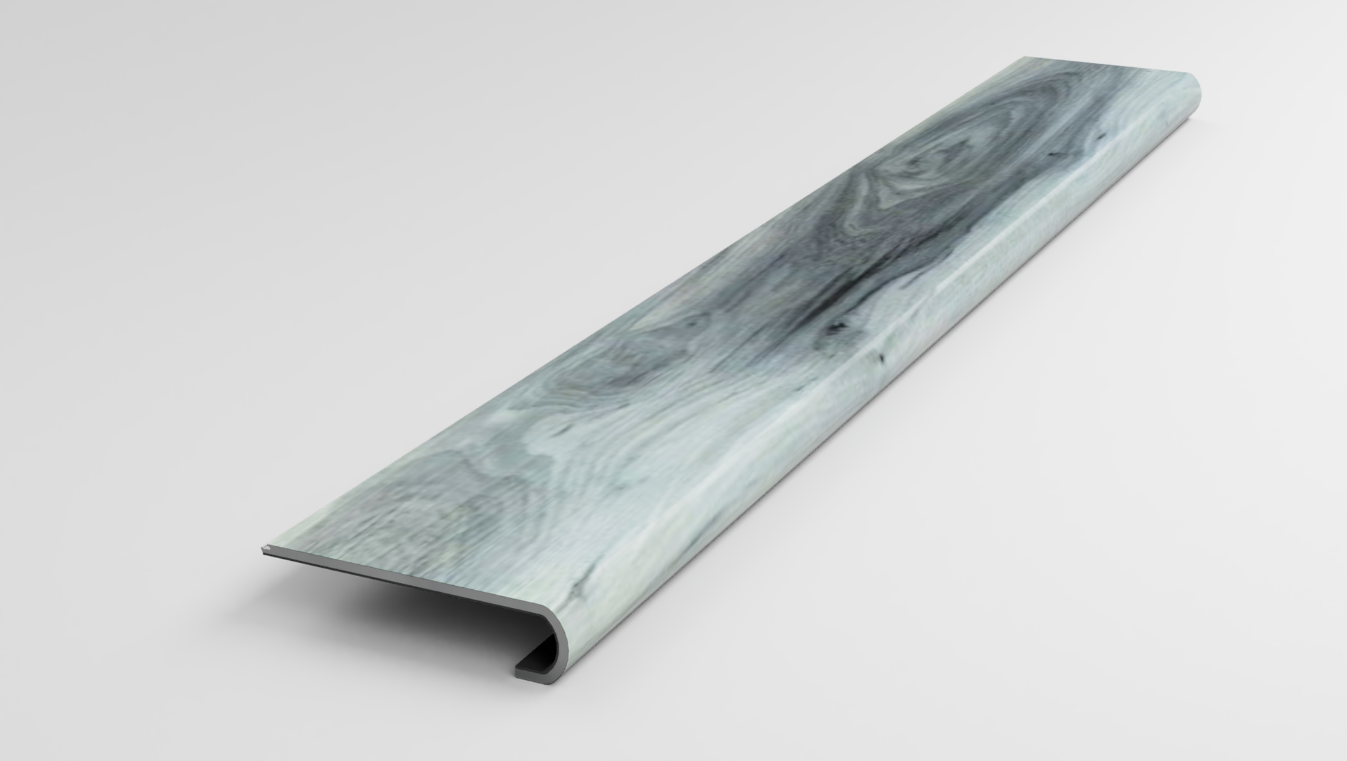 This variant is a Stair Nose made from a Home Decorators Collection Peyor Blue Luxury Vinyl Plank. It is designed to be fitted and glued to the unfinished Stair Tread Nose. An addition Home Decorators Collection Peyor Blue plank that you supply can be clicked in behind the nose to cover the remaining unfinished area.