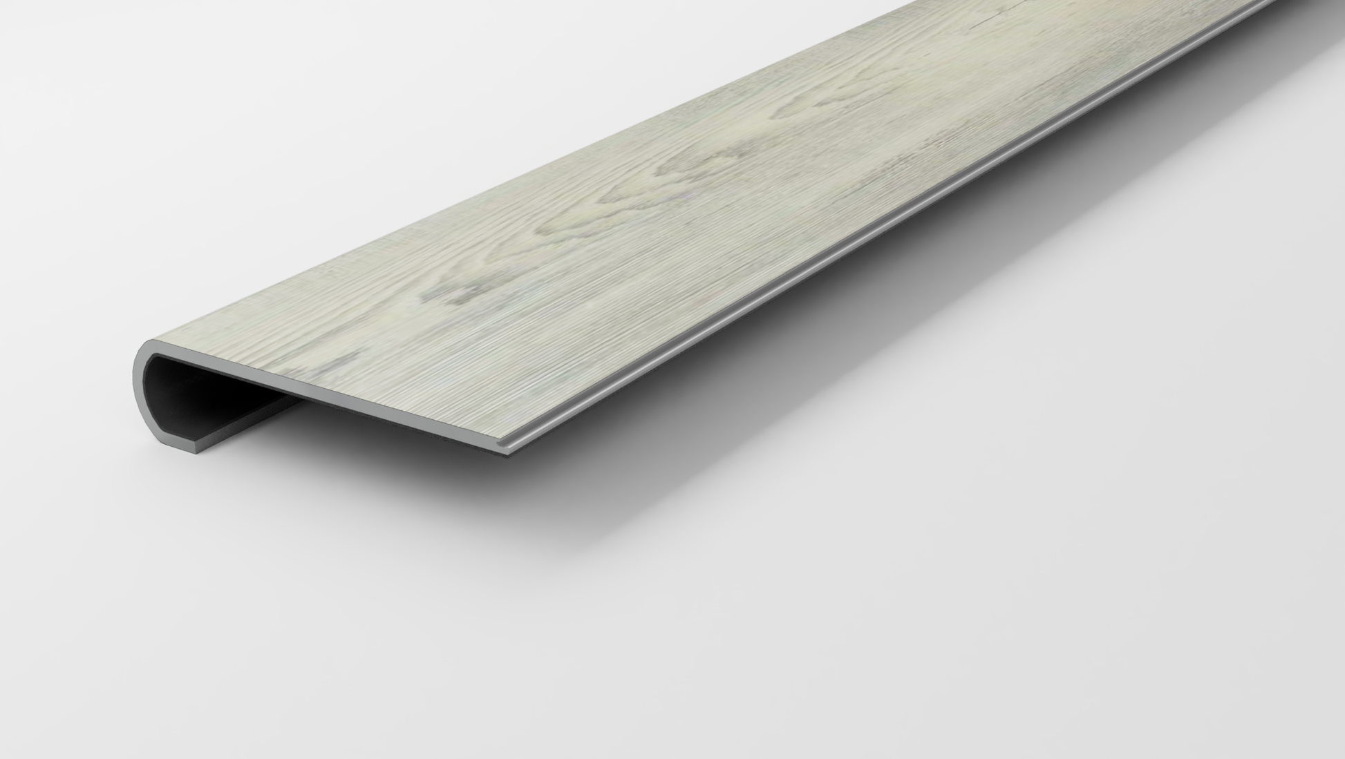 This variant is a Stair Nose made from a Shaw Primavera HD Plus Whisper 20 MIL Luxury Vinyl Plank. It is designed to be fitted and glued to the unfinished Stair Tread Nose. An addition Shaw Primavera HD Plus Whisper 20 MIL plank that you supply can be clicked in behind the nose to cover the remaining unfinished area.