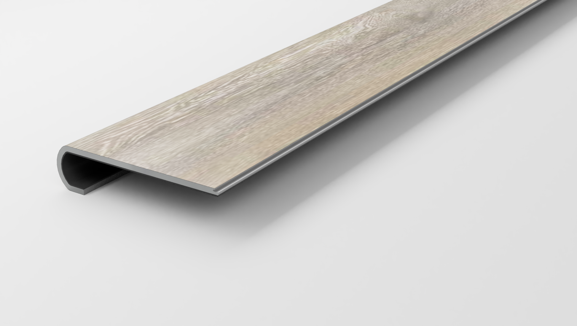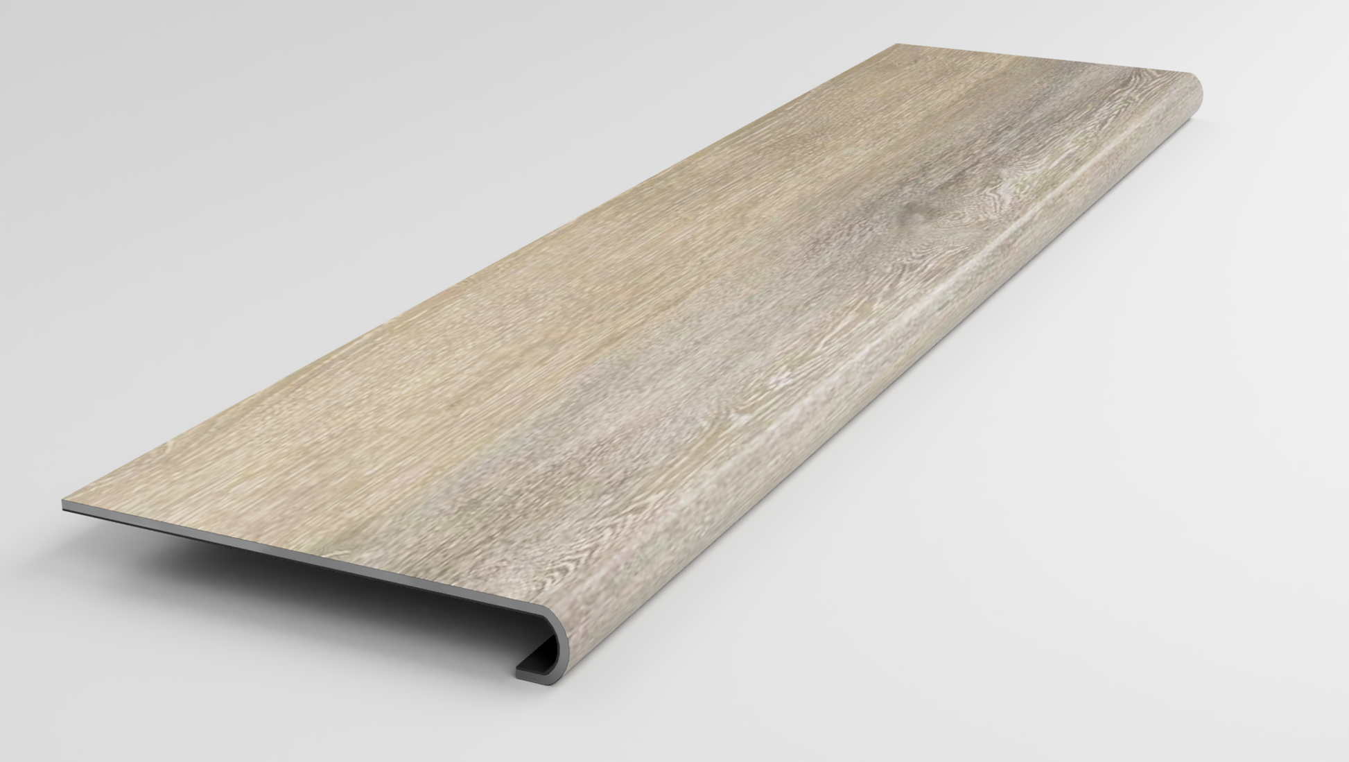 Made from Lifeproof Radiant Oak flooring, this Stair Nose will now allow you to use your favorite flooring on your stairs. Previously, you would have to use other tread brands that were made of subpar materials and only looked similar to your flooring! To make matters worse, a transition piece was often required at the top of the stairs posing both a hazard, and an eye sore. Treads Plus has made it possible to use true Lifeproof* Radiant Oak flooring to seamlessly transition from your flooring to your stairs.
