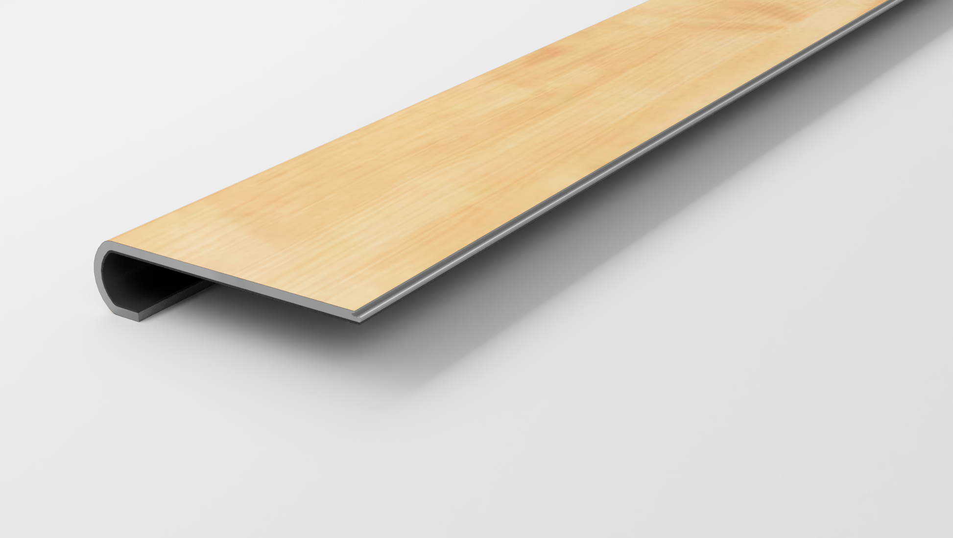 This variant fits 1-1/8 inch stair noses and has a length of 42 inches. It comes in a beautiful bull nose design.