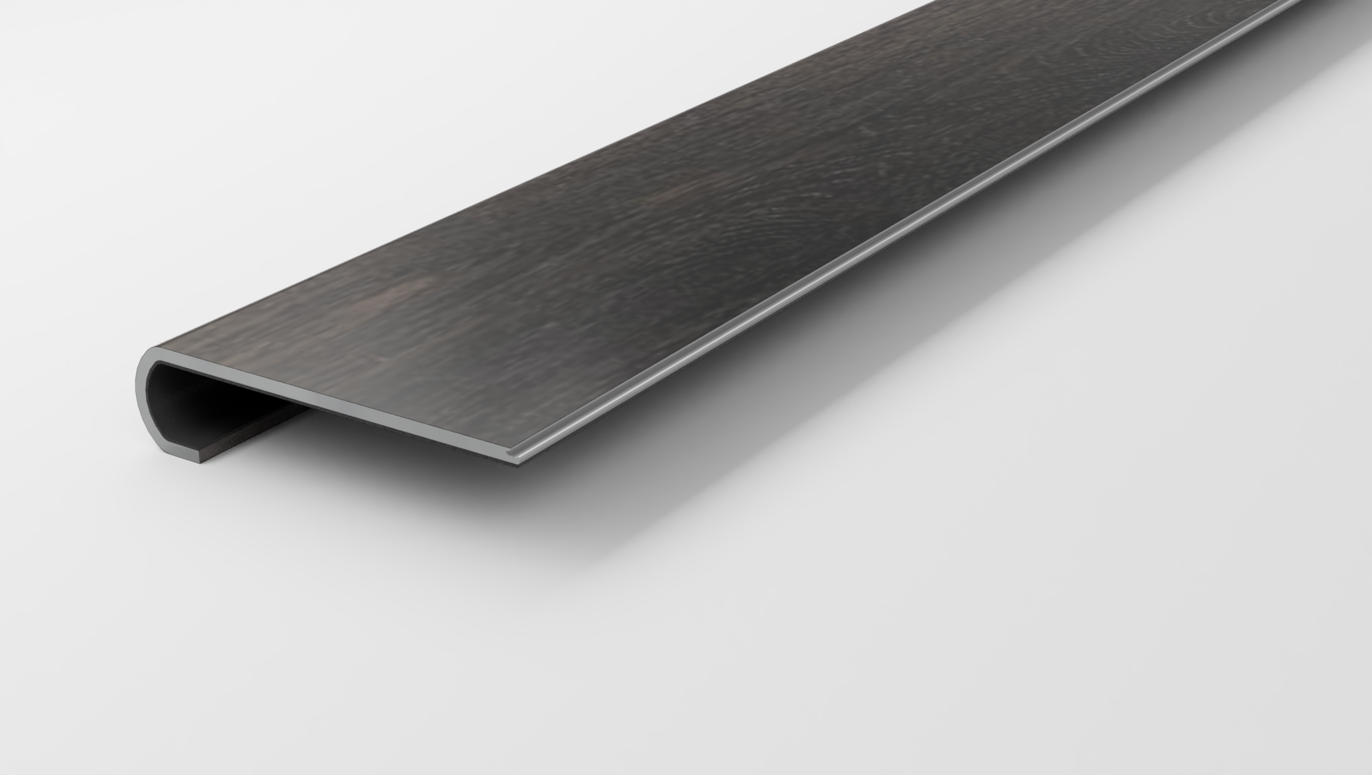 This variant fits 1-1/8 inch stair noses and has a length of 42 inches. It comes in a beautiful bull nose design.