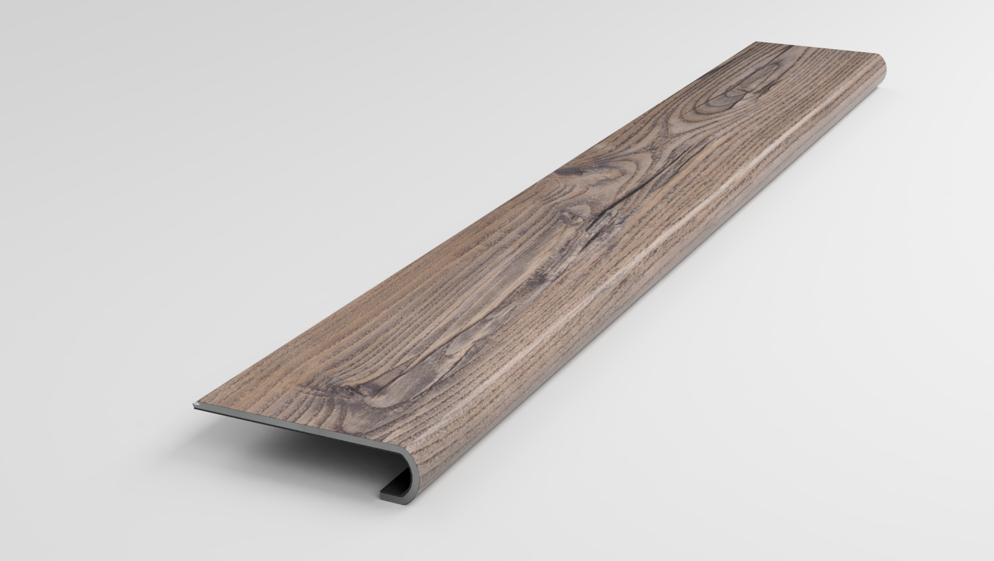 This variant is a Stair Nose made from a CORETec Sherwood Rustic Pine Luxury Vinyl Plank. It is designed to be fitted and glued to the unfinished Stair Tread Nose. An addition CORETec Sherwood Rustic Pine plank that you supply can be clicked in behind the nose to cover the remaining unfinished area.