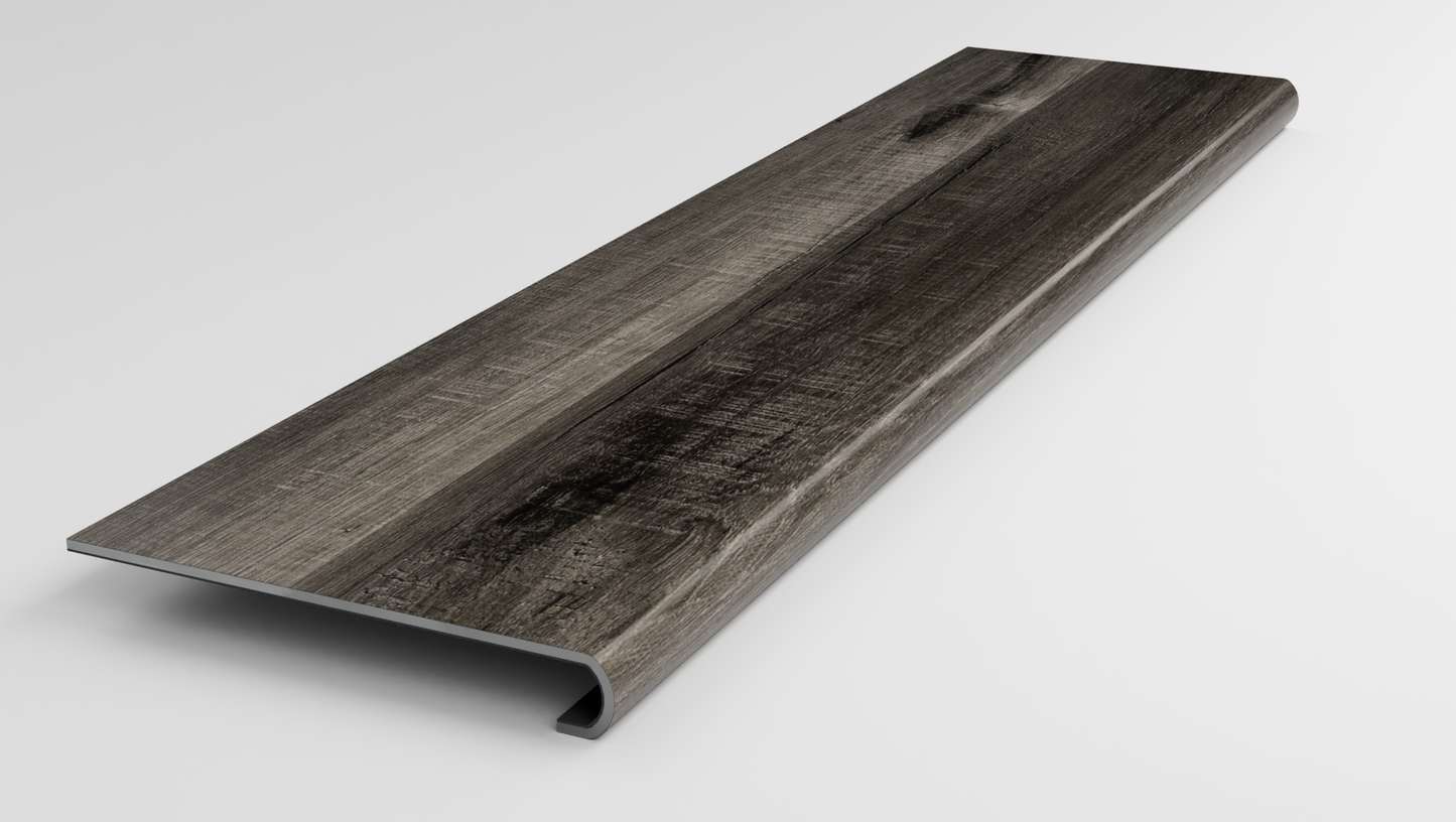 This variant is a Stair Nose made from a NuCore* Sierra Gray Luxury Vinyl Plank. It is designed to be fitted and glued to the unfinished Stair Tread Nose. An addition NuCore* Sierra Gray plank that you supply can be clicked in behind the nose to cover the remaining unfinished area.