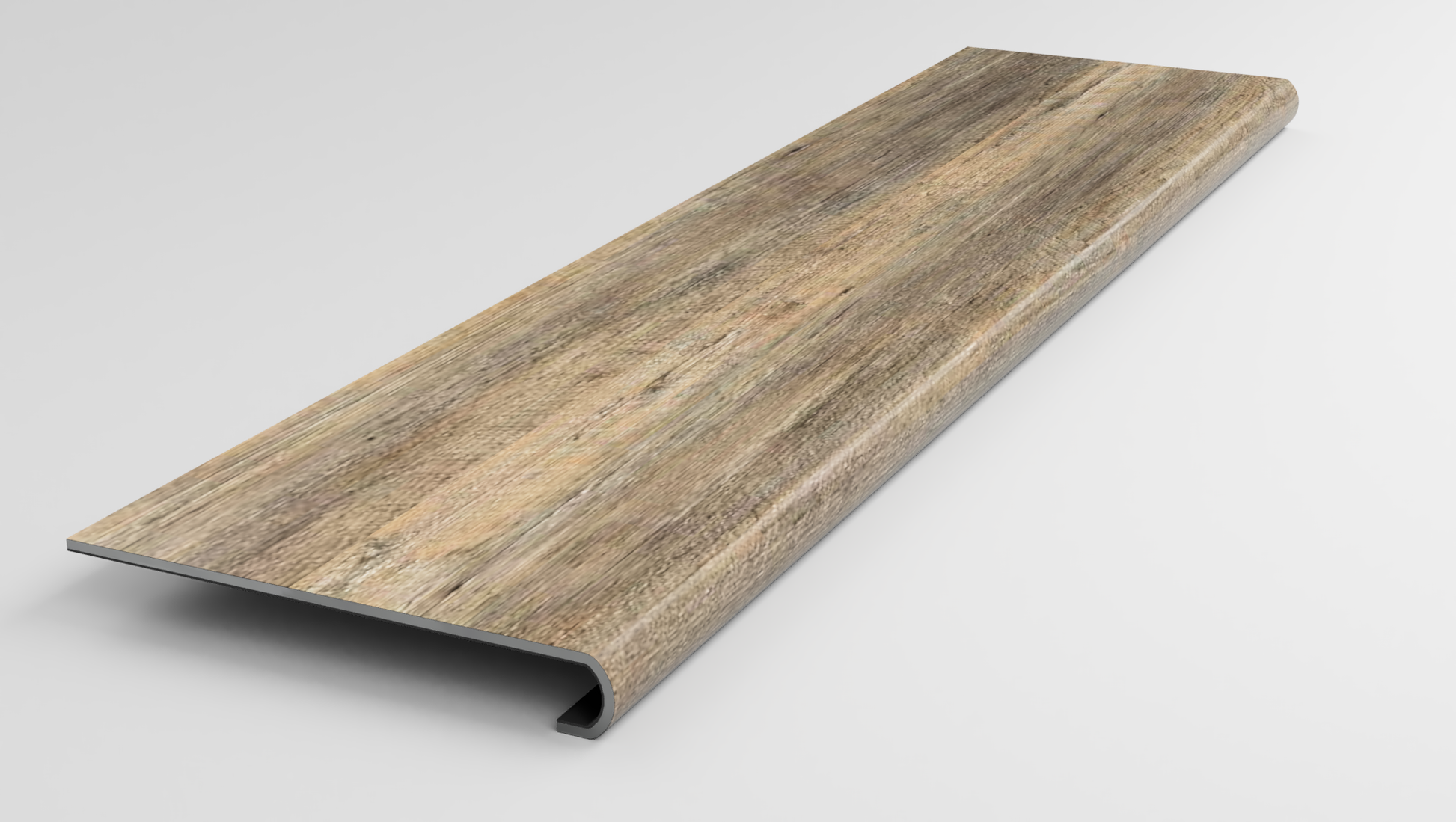 Made from Lifeproof Stafford Oak flooring, this Stair Nose will now allow you to use your favorite flooring on your stairs. Previously, you would have to use other tread brands that were made of subpar materials and only looked similar to your flooring! To make matters worse, a transition piece was often required at the top of the stairs posing both a hazard, and an eye sore. Treads Plus has made it possible to use true Lifeproof* Stafford Oak flooring to seamlessly transition from your flooring to your stairs.