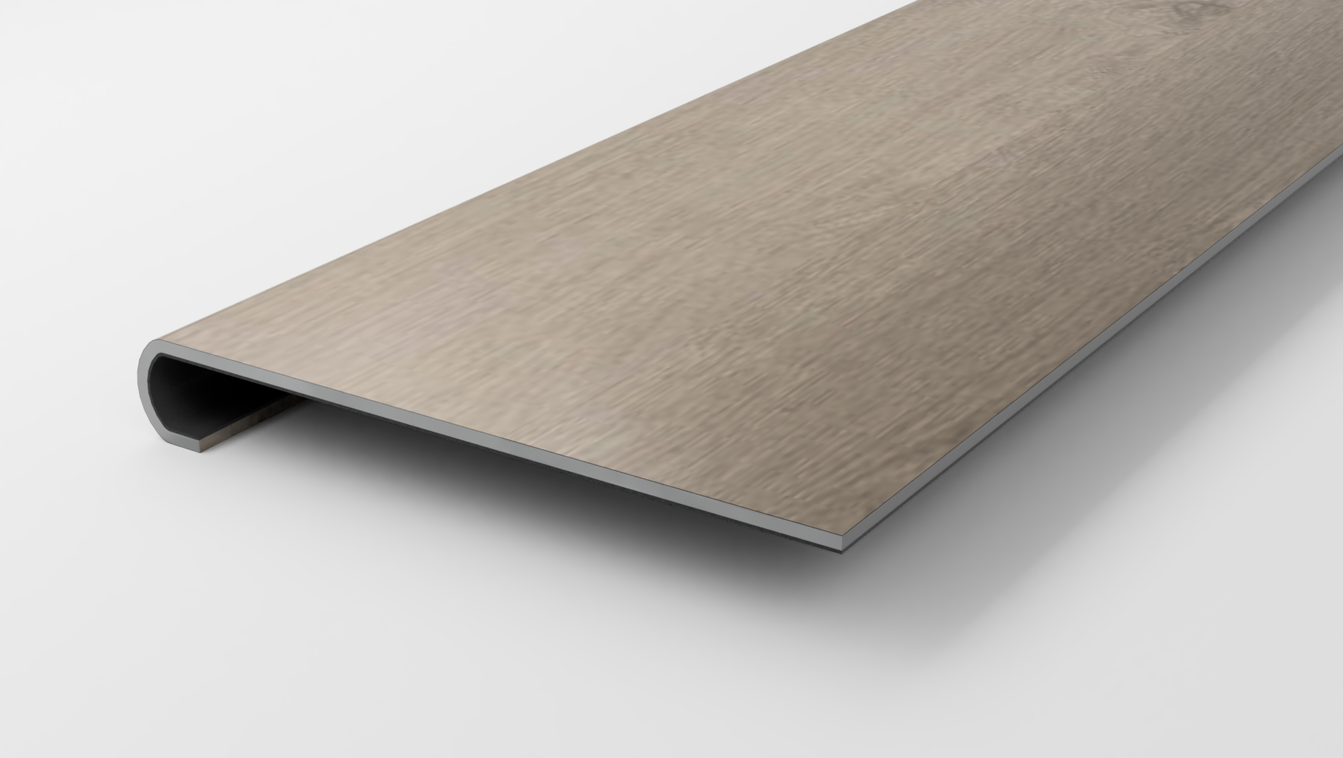 This variant is a Stair Nose made from a Home Decorators Collection Stonehaven Oak Luxury Vinyl Plank. It is designed to be fitted and glued to the unfinished Stair Tread Nose. An addition Home Decorators Collection Stonehaven Oak plank that you supply can be clicked in behind the nose to cover the remaining unfinished area.