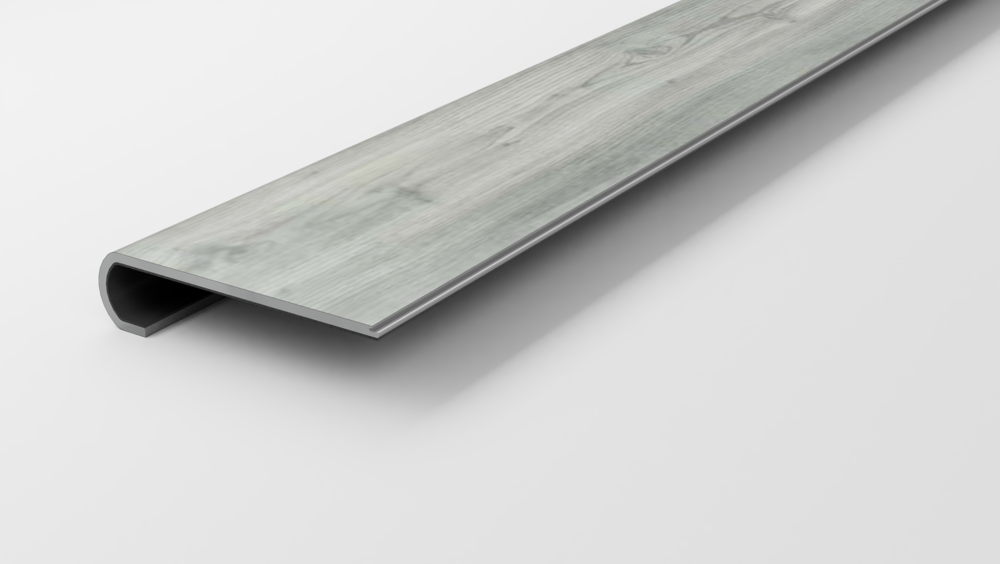 Made from Shaw Sydney | Fog flooring, this Stair Nose will now allow you to use your favorite flooring on your stairs. Previously, you would have to use other tread brands that were made of subpar materials and only looked similar to your flooring! To make matters worse, a transition piece was often required at the top of the stairs posing both a hazard, and an eye sore. Treads Plus has made it possible to use true Shaw* Sydney | Fog flooring to seamlessly transition from your flooring to your stairs.