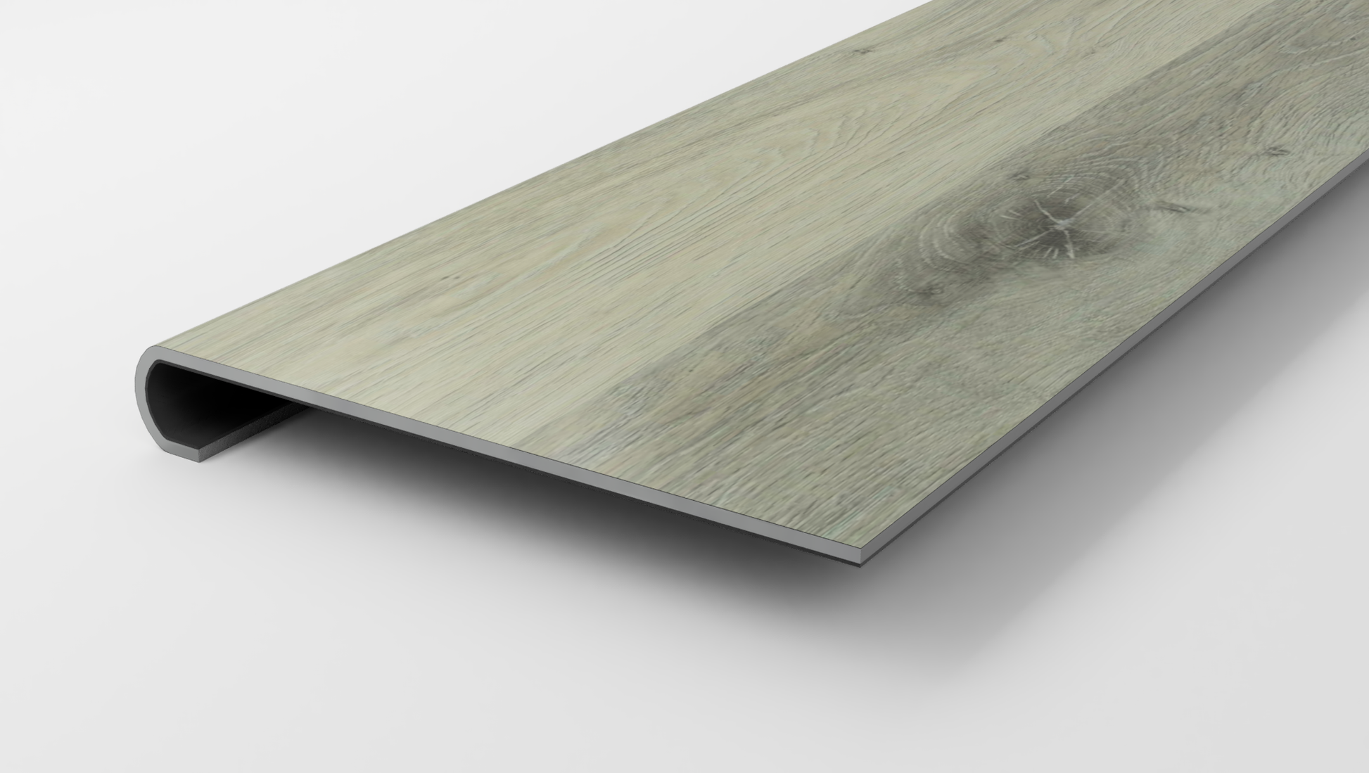 This variant is a Stair Nose made from a SMARTCORE Ultra XL Chadwick Oak Luxury Vinyl Plank. It is designed to be fitted and glued to the unfinished Stair Tread Nose. An addition SMARTCORE Ultra XL Chadwick Oak plank that you supply can be clicked in behind the nose to cover the remaining unfinished area.