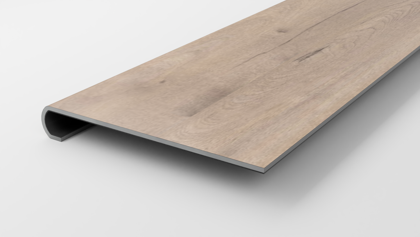 Made from Karndean* Van Gogh Frosted Birch flooring, this Stair Nose will now allow you to use your favorite flooring on your stairs. Previously, you would have to use other tread brands that were made of subpar materials and only looked similar to your flooring! To make matters worse, a transition piece was often required at the top of the stairs posing both a hazard, and an eye sore. Treads Plus has made it possible to use true Karndean* Van Gogh Frosted Birch flooring to seamlessly transition from your flooring to your stairs.