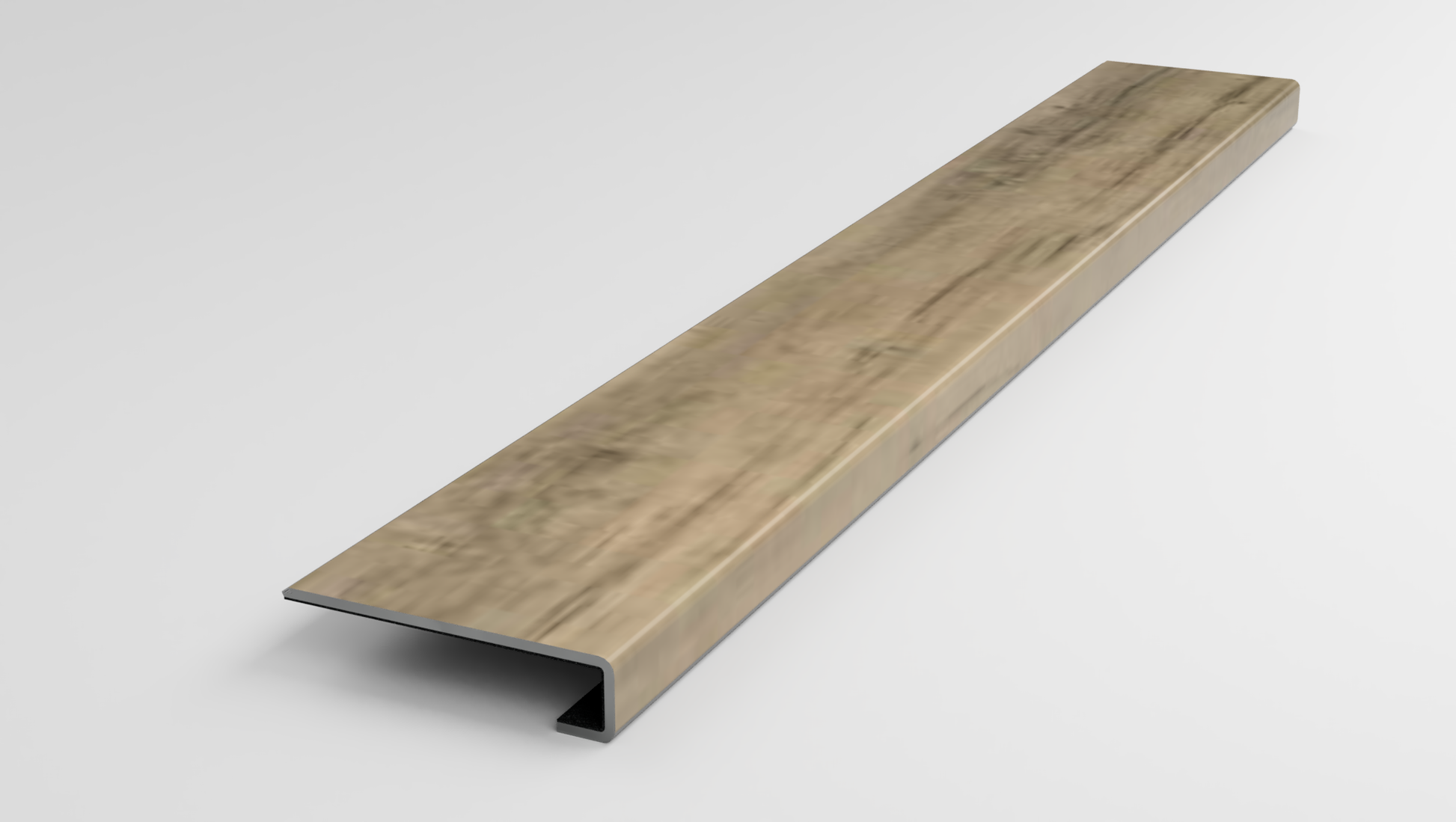 This variant is a Stair Nose made from a Shaw Wentworth Verdon Hickory Luxury Vinyl Plank. It is designed to be fitted and glued to the unfinished Stair Tread Nose. An addition Shaw Wentworth Verdon Hickory plank that you supply can be clicked in behind the nose to cover the remaining unfinished area.