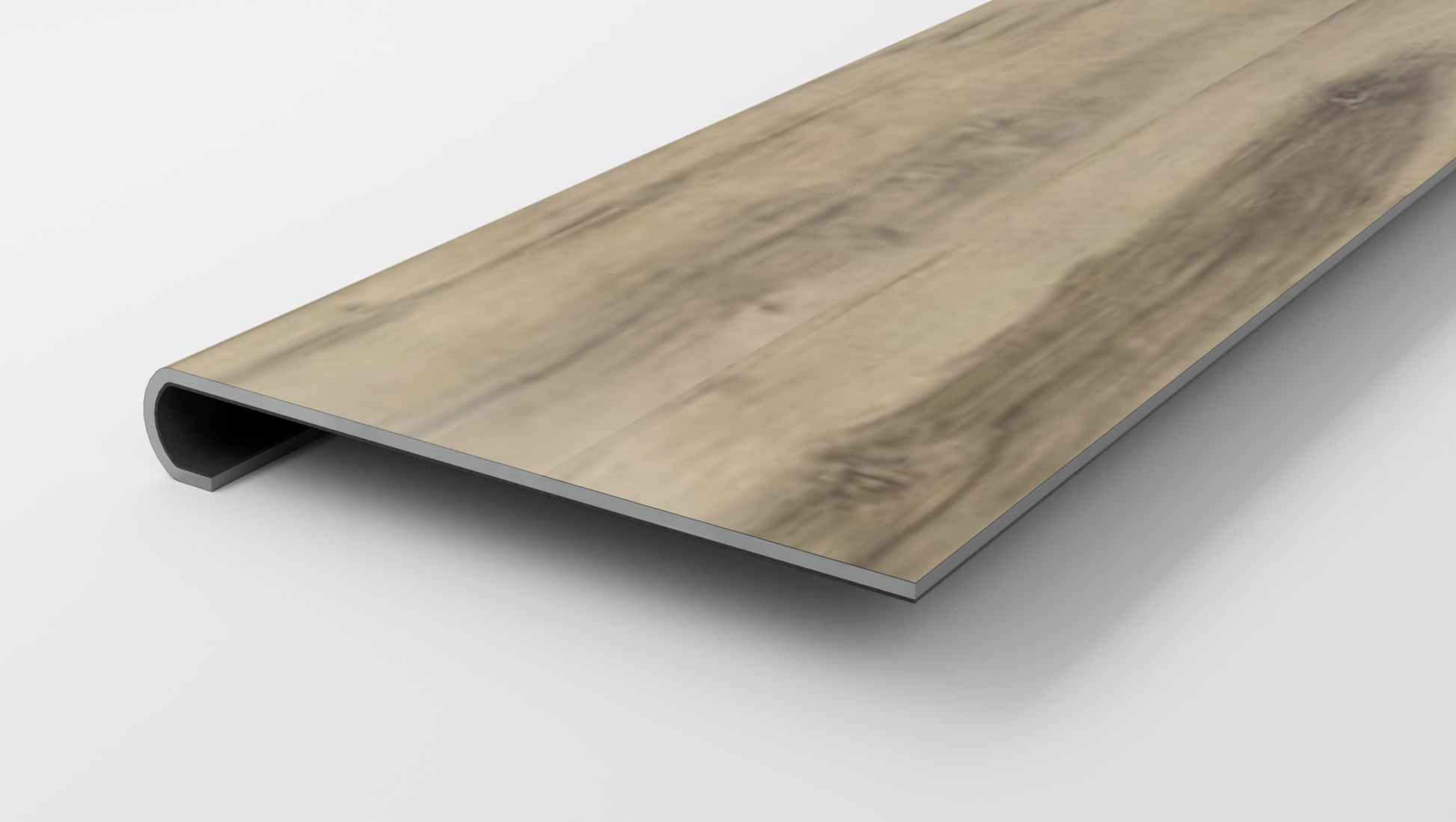 Made from Shaw Wentworth Verdon Hickory flooring, this Stair Nose will now allow you to use your favorite flooring on your stairs. Previously, you would have to use other tread brands that were made of subpar materials and only looked similar to your flooring! To make matters worse, a transition piece was often required at the top of the stairs posing both a hazard, and an eye sore. Treads Plus has made it possible to use true Shaw* Wentworth Verdon Hickory flooring to seamlessly transition from your flooring to your stairs.
