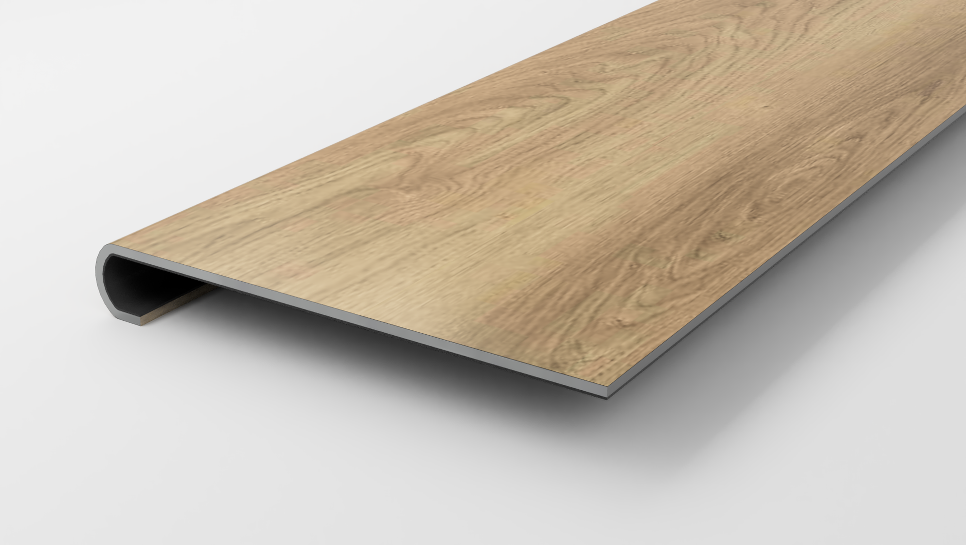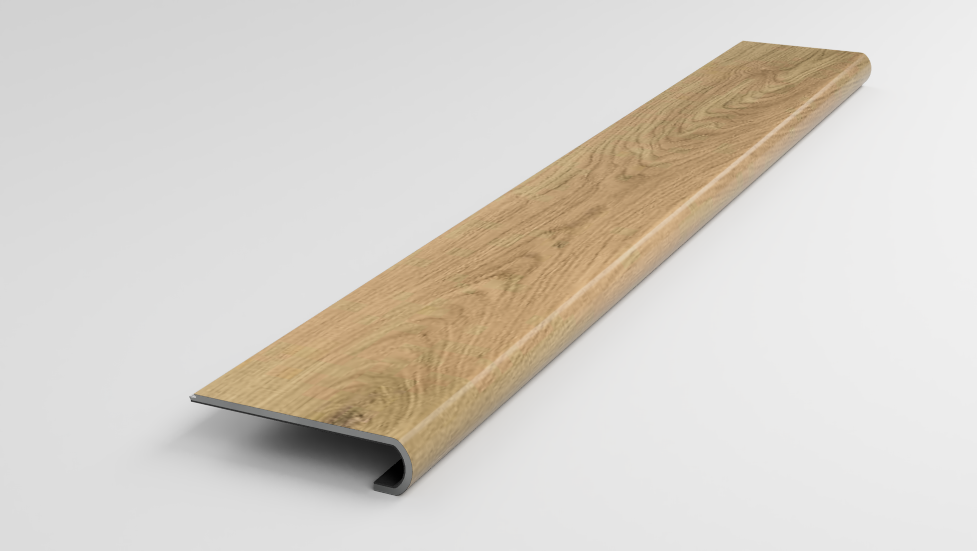 This variant is a Stair Nose made from a Mohawk Home Windsor Oak Luxury Vinyl Plank. It is designed to be fitted and glued to the unfinished Stair Tread Nose. An addition Mohawk Home Windsor Oak plank that you supply can be clicked in behind the nose to cover the remaining unfinished area.