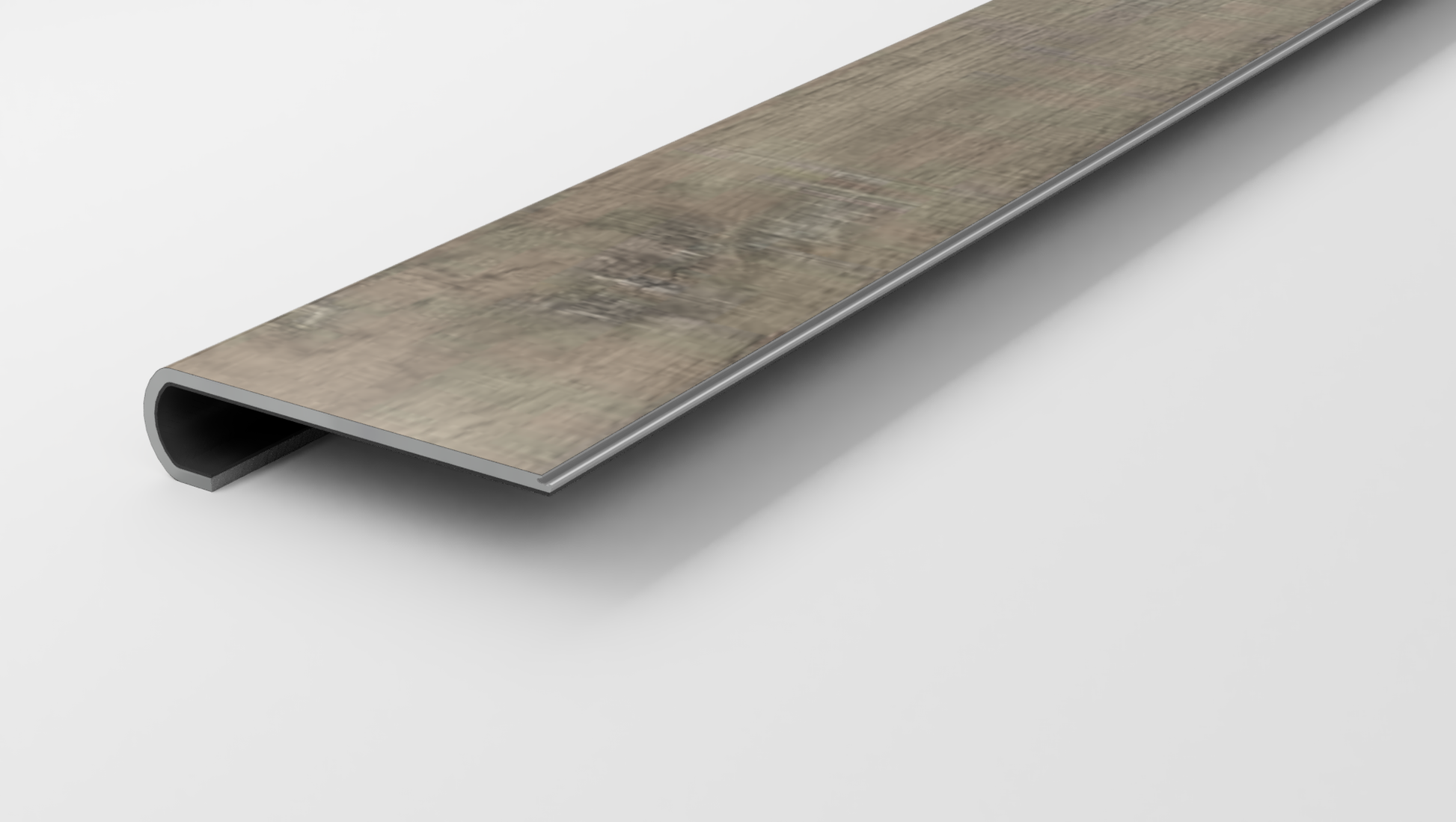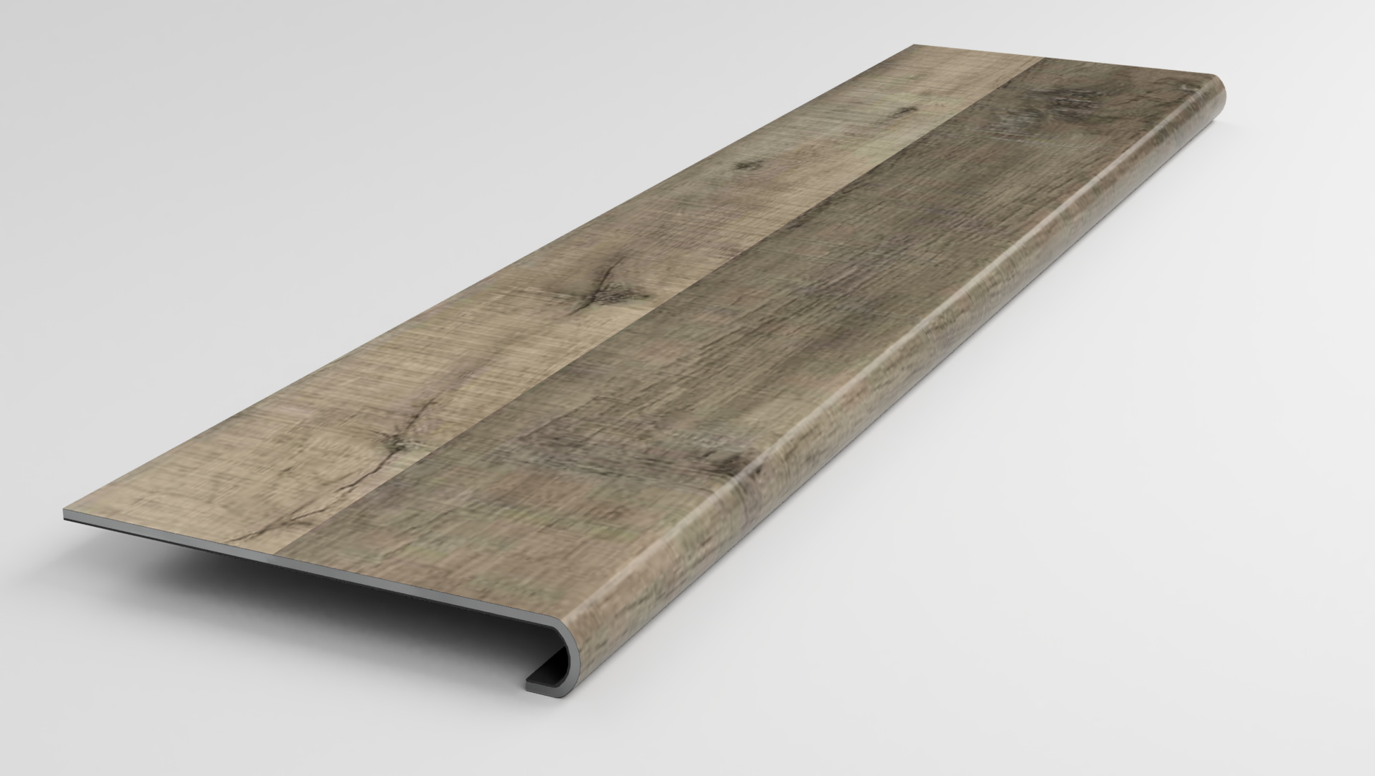 This variant is a Stair Nose made from a A&A Surfaces Woodland Sunderland Luxury Vinyl Plank. It is designed to be fitted and glued to the unfinished Stair Tread Nose. An addition A&A Surfaces Woodland Sunderland plank that you supply can be clicked in behind the nose to cover the remaining unfinished area.
